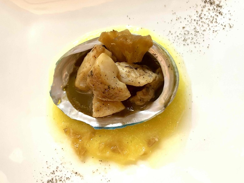 フレッシュな鮑のうま味をそのままに、スパイスとパイナップルソースでいただく夏らしい味わいの一皿でした。