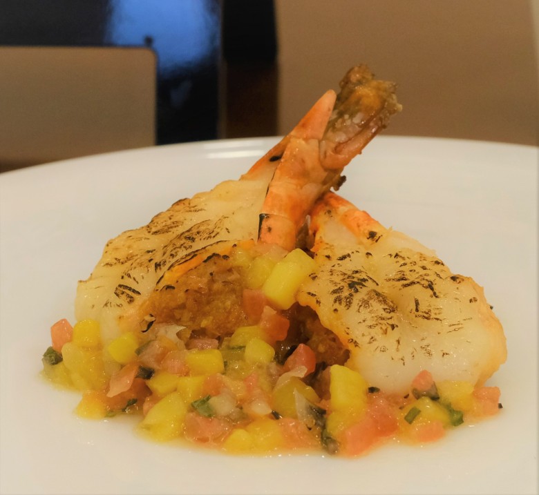 鬼手長海老のロースト マンゴーとトマトとオリーブのソース