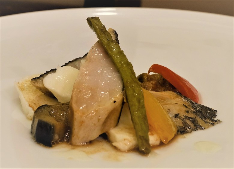 Marinade balsamique de maquereau espagnol rÔti, légumes d'éte et fromage mozzarella